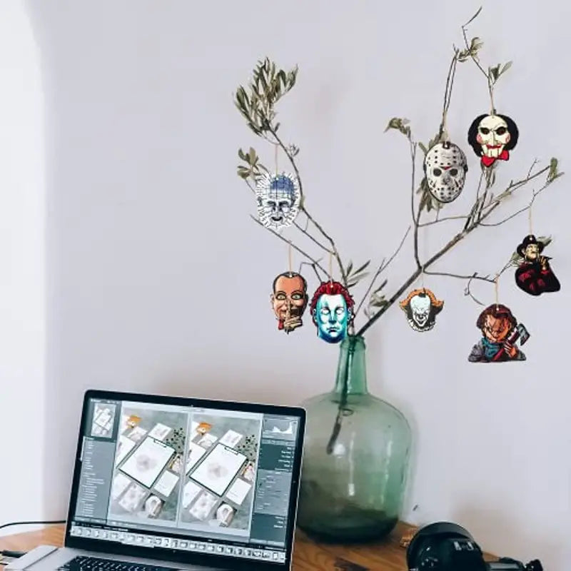 Bring a daring twist to your holiday decor with these Horror Movie Bad Guys wooden ornaments! Channel Freddy Kruger, It, and Chucky - all among the scariest villains ever - and let their iconic faces create a spook-tacular atmosphere in your home. Dare to make a statement!